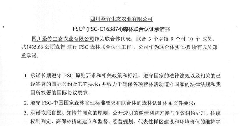 森林聯(lián)合認(rèn)證承諾書
