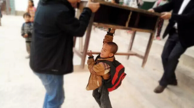 有幾個小男孩,像小大人一樣,執意要和我們一起搬運。哪怕是桌子蓋過了他們頭頂,哪怕是一邊抬著桌子一邊喘著大氣,他們依然不肯休息。我們知道,他們只是希望盡自己的的一份力,來回報我們的這份溫暖。/010.jpg)