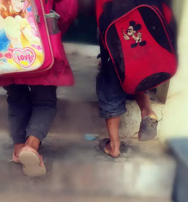 同行的“斑布人”們,剛進入學校就被親眼所見的教學環境和孩子們的現狀震驚:那破爛不堪的課桌、深秋了仍穿在小腳上的破了洞的涼鞋、拉鏈全壞了的書包,還有一束束懼生且好奇的目光。。。??粗⒆觽円驗槲覀兊牡絹須g喜開心的樣子,大家臉上帶著笑,可心里卻是酸楚的淚。我們來了, “斑布公益行”來到了這里。七個多小時的路程是值得的,因為一群天真善良的孩子們在等著我們。一車嶄新的課桌和衣物,對孩子們來說,是比過年還豐富的禮物。/06.jpg)